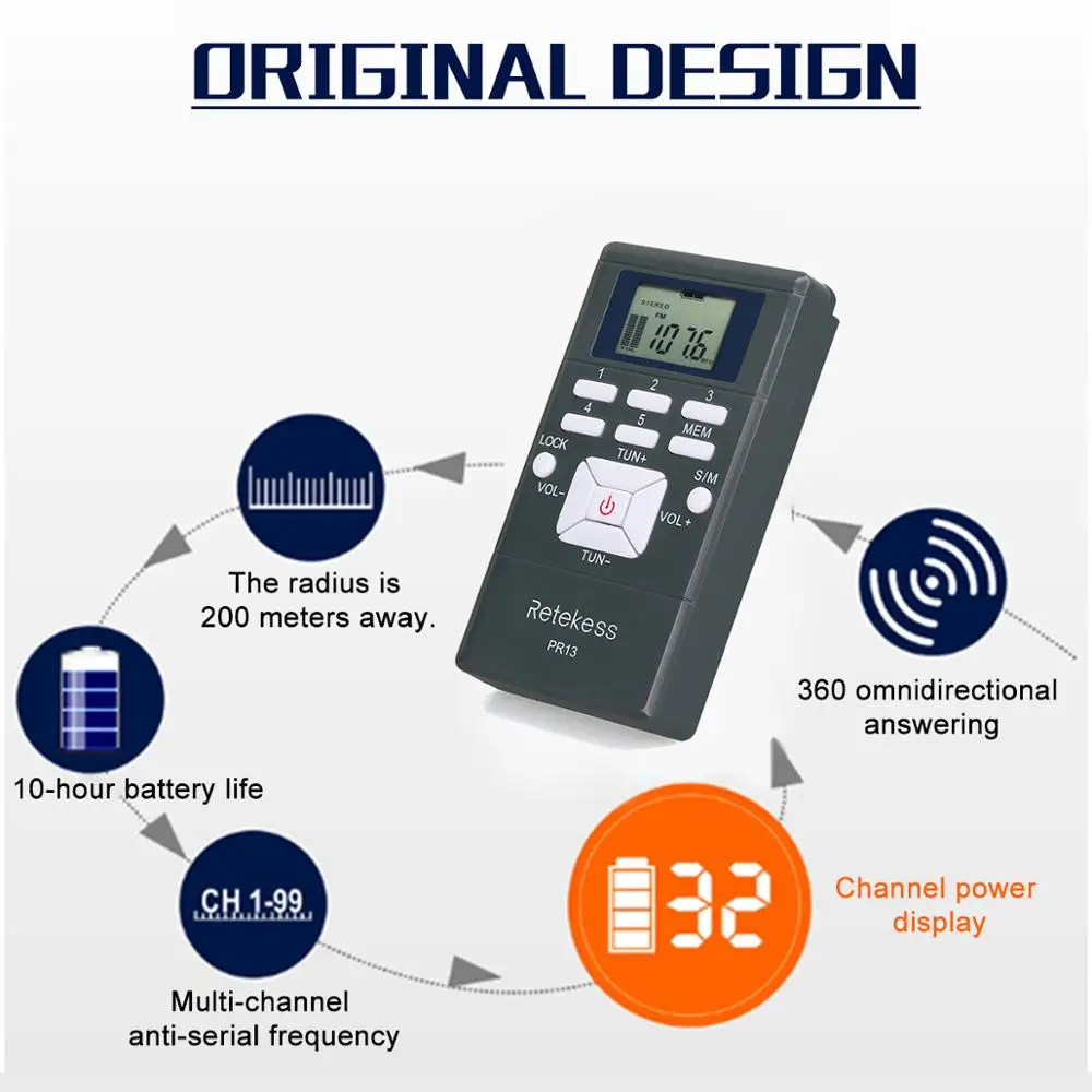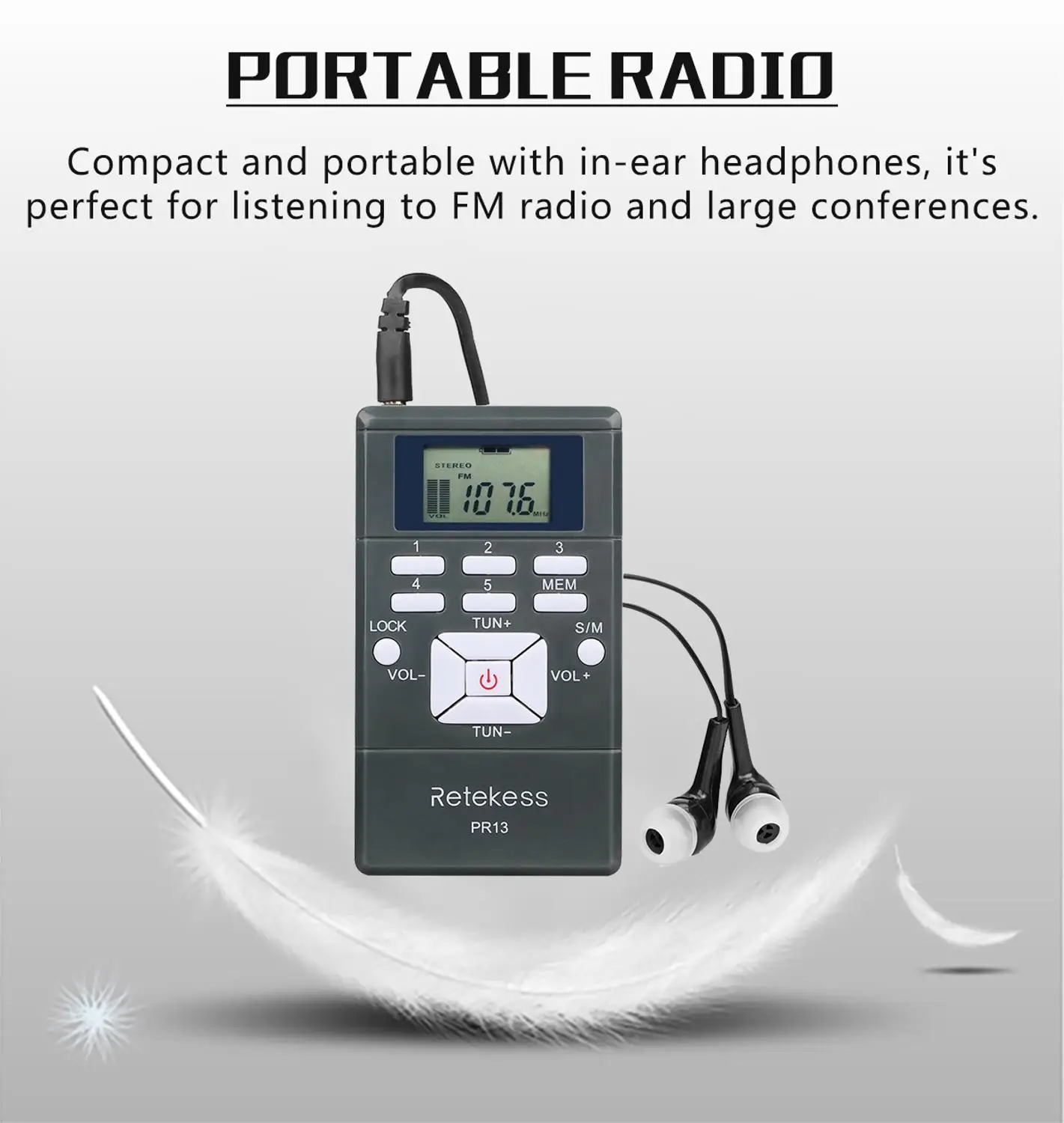 10pcs RETEKESS PR13 Radio FM Stereo DSP Portable Radio Receiver Digital Clock For Guiding Church Co